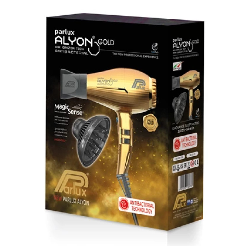 Фен для волос Parlux Alyon Gold Magic Sense – это настоящий профессиональный фен с невероятной выносливостью, изысканностью, присущей фенам Парлюкс, хорошей производительностью и качеством сборки. Модель сейчас (на 2021 год) является самой новой из всего модельного ряда производителя и несет в себе весь потенциал технических инноваций, которыми всегда выделялись фены Parlux.