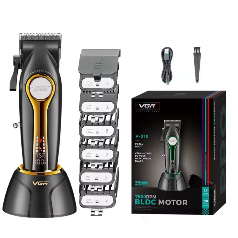 Машинка для стрижки VGR V-010 оснащена мощным роторным BLDC мотором с высокой частотой работы. Мотор отличается низким уровнем шума, высокой мощностью и длительным сроком службы. Машинка оснащена системой контроля частоты работы мотора, чтобы обеспечить постоянную мощность на скорости 7500 оборотов за минуту. Напомним, что за один оборот эксцентрик делает 2 колебания ножа, что означает работу ножевого блока на скорости 15 000 колебаний за минуту. Высокая скорость работы ножа обеспечивает чистейший срез волос при любой интенсивности работы. На корпусе размещен специальный LED индикатор, на котором отображается расчетное время работы от аккумулятора и скорость работы мотора.