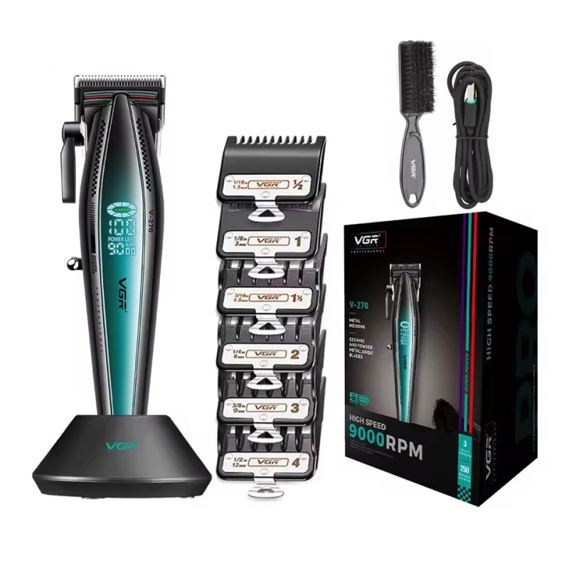 Модель VGR V-270 оснащена мощным роторным мотором с высокой частотой работы. Машинка оснащена системой контроля частоты работы мотора, чтобы обеспечить постоянную мощность на скорости 9000 оборотов. Высокая скорость мотора обеспечивает чистый срез при любой интенсивности работы. На корпусе размещен специальный LED индикатор, на котором отображается расчетное время работы от аккумулятора и скорость работы мотора.