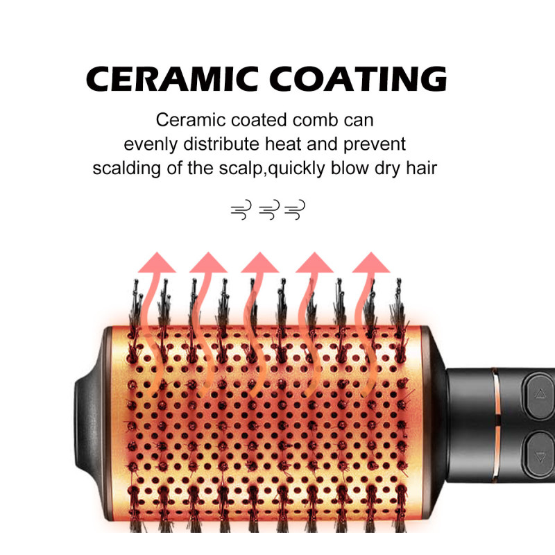 Мощность модели составляет 800 Вт, что делает фен-щетку достаточно мощной в своем классе и обеспечит безопасную сушку практически любых волос. Благодаря DC мотору, фен-щетка работает очень тихо и имеет небольшой вес. Модель имеет 3 режима нагрева и 2 режима скорости, чтобы максимально точно подобрать требуемый режим работы под конкретную задачу.