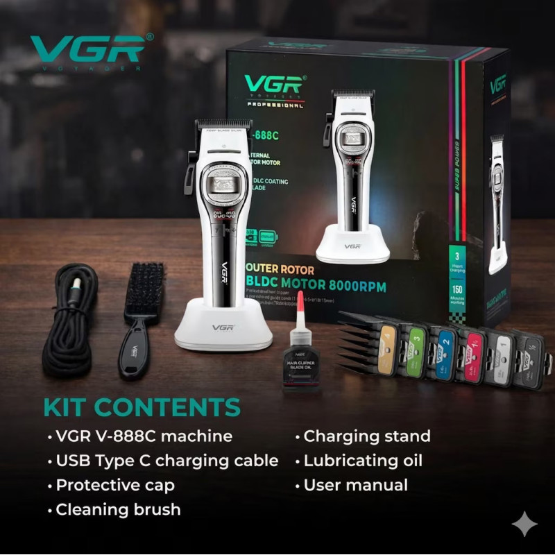 VGR V-888C представляет собой ультрасовременную профессиональную машинку для стрижки волос. Функциональная модель имеет опрятный стильный дизайн, множество инновационных решений и технологий, которые, несомненно пригодяться стилисту в его ежедневной работе, чтобы сделать ее как можно более легкой, непринужденной и эффективной. Можно сказать, что такая машинка VGR представляет собой великолепный профессиональный инструмент, который сочетает в себе элегантность, производительность и функциональность. Знакомимся с моделью ближе.