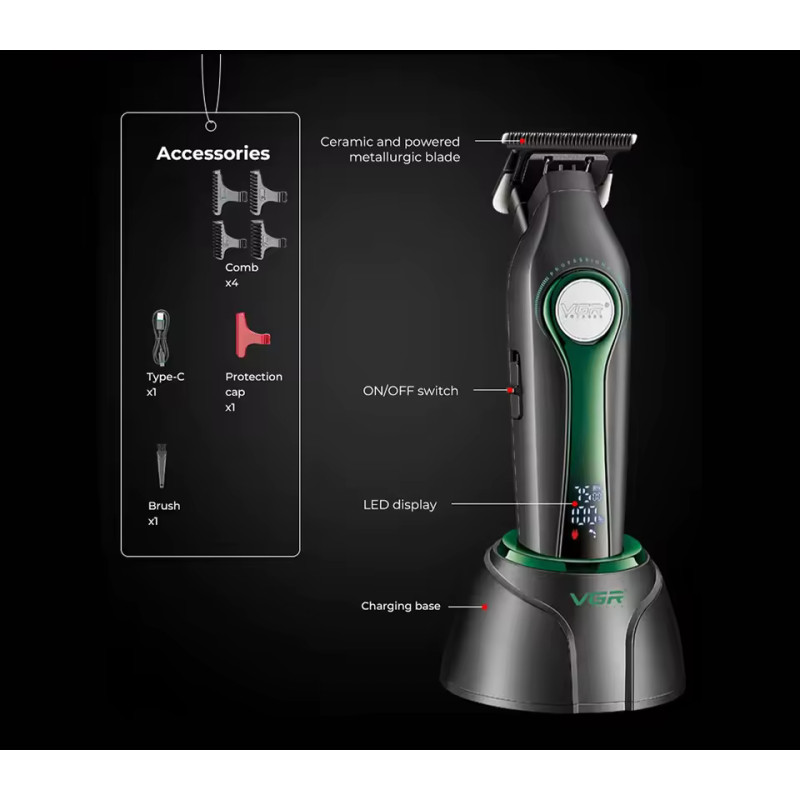 VGR V-993 Green представляет собой беспроводной профессиональный триммер для стрижки волос с открытым ножевым блоком. Он оснащен всеми необходимыми современными функциями и технологиями для комфортной и легкой работы. Модель очень проста в работе, прекрасно подойдет как для профессионального, так и для домашнего использования, а также для стрижки бороды. Оригинальный и стильный дизайн, несомненно, понравиться любому профессионалу и покупателю.