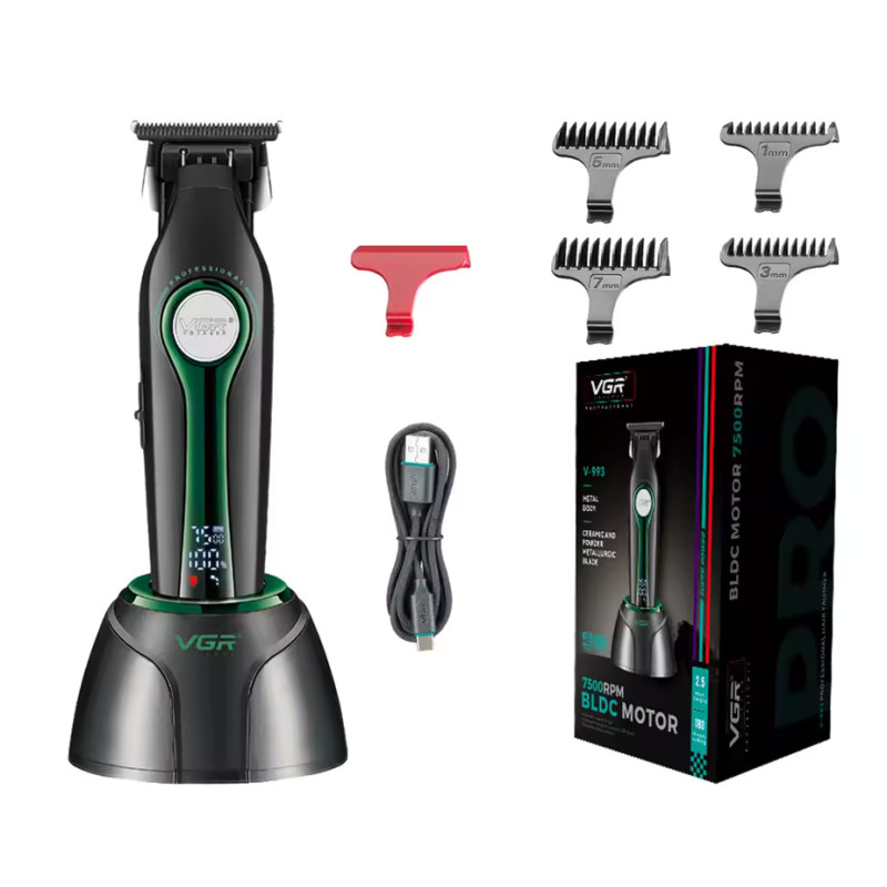 Модель VGR V-993 оснащена мощным роторным мотором с высокой частотой работы, чтобы обеспечить хорошую мощность на максимальной скорости в режиме 7500 оборотов за минуту. Высочайшая скорость мотора обеспечивает чистый срез при любой интенсивности работы вне зависимости от густоты и жесткости волос. На корпусе размещен специальный LED дисплей, на котором отображается расчетное время работы от аккумулятора и текущая скорость мотора.