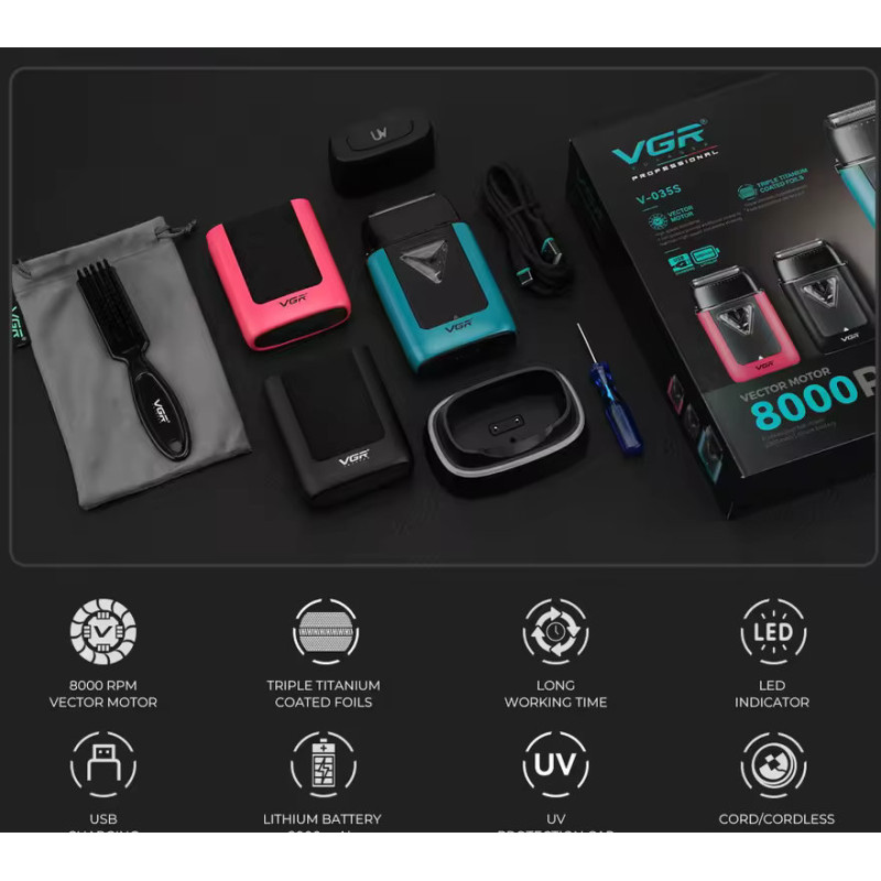 Шейвер VGR V-035S - це функціональна професійна модель, яка зможе впоратися абсолютно з будь-яким завданням, яке б не стояло перед ним. Він має чудові характеристики і великі можливості для сучасного догляду за бородою, головою або шиєю. Практичний металевий корпус із алюмінієвого сплаву з яскравим дизайном не залишить байдужим нікого, а шикарна функціональність та багата комплектація – жодного професійного стиліста.