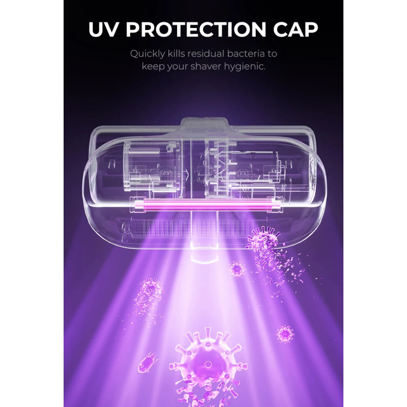 У щоденній роботі часта обробка шейвера спиртовими розчинами може негативно впливати на довговічність сіток та ножів. Тому в моделі передбачено функцію ультрафіолетової обробки сектою. Коли ви закриваєте шейвер кришкою, активується спеціальна ультрафіолетова лампа, яка нейтралізує 99,9% шкідливих мікробів та бактерій на поверхні сіток та ножів. Таким чином, вам не потрібно використовувати різні знезаражувальні спреї, що продовжить термін служби сіток і ножів.