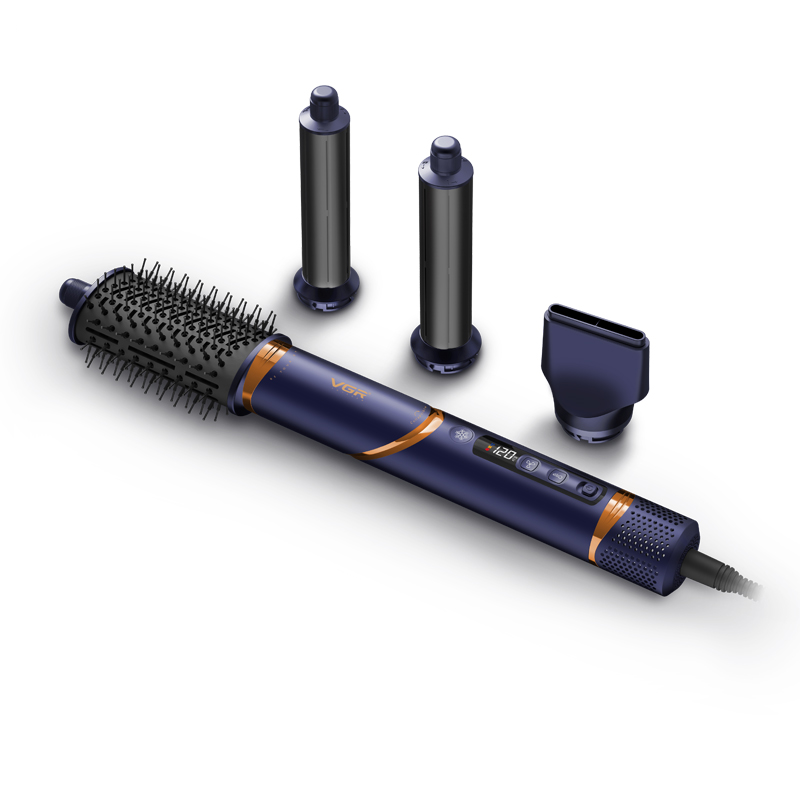 Фен-щітка VGR V-474 Dark Blue – є потужним професійним мультистайлером 4 в 1 за допомогою якого Ви зможете виконувати сушіння волосся, різні укладання, завивку волосся і моделювати його як завгодно. Багата комплектація, безсумнівно, сподобається будь-якому професіоналу. Завдяки чотирьом змінним насадкам, кільком режимам температури і швидкості, захисту від перегріву і зручному шнуру, що обертається на 360°, ця фен-щітка значно спрощує догляд за волоссям, піклуючись про їх здоров'я. Ергономічна конструкція забезпечує салонний результат прямо у вас вдома.